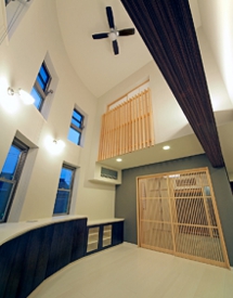 また、吹き抜けや勾配天井などの縦の空間も、床面積以上のゆとりを与えます。